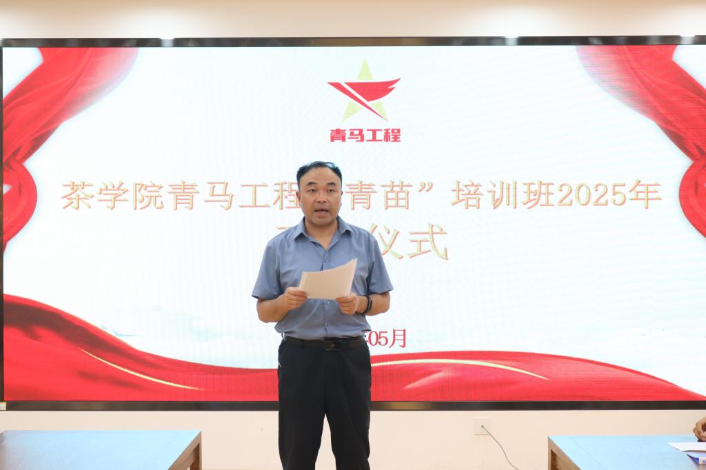 为进一步贯彻落实《关于深入实施青年马克思主义者培养工程的意见》,加强学生思想政治教育,5月14日下午,我院2025年“青马工程”“青苗”培训班开班仪式在1C201举办。茶学院党委书记王鹏,校团委副书记魏竞超,茶学院党委副书记王子浩,专职辅导员李梦婷以及培训班全体学员参加了此次活动。仪式由王子浩主持。