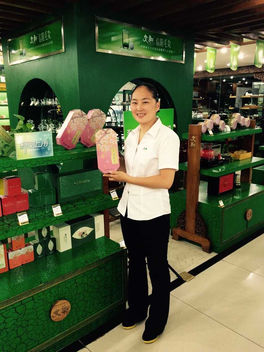 曹娇娇,茶叶生产加工技术专业2008届学生,现为信阳文新茶叶有限公司郑州分公司副总经理,主要负责郑州所有专卖店及三个茶艺馆的销售运营工作