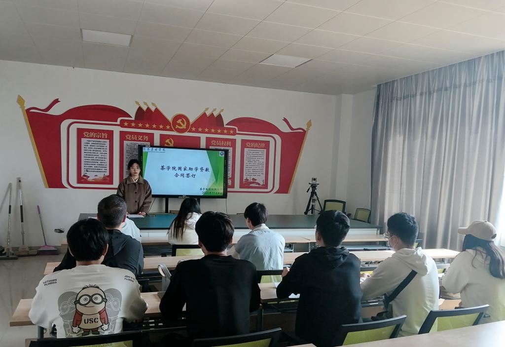 为进一步规范做好2022年高校国家助学贷款合同审查和签订工作,增强贷款大学生的诚信意识,11月9日中午,茶学院于科技楼1C307举行了2021年高校助学贷款合同签字仪式暨诚信教育。会议由茶学院资助专员丁岚老师主持,学院全体高校助学贷款学生参加了活动。