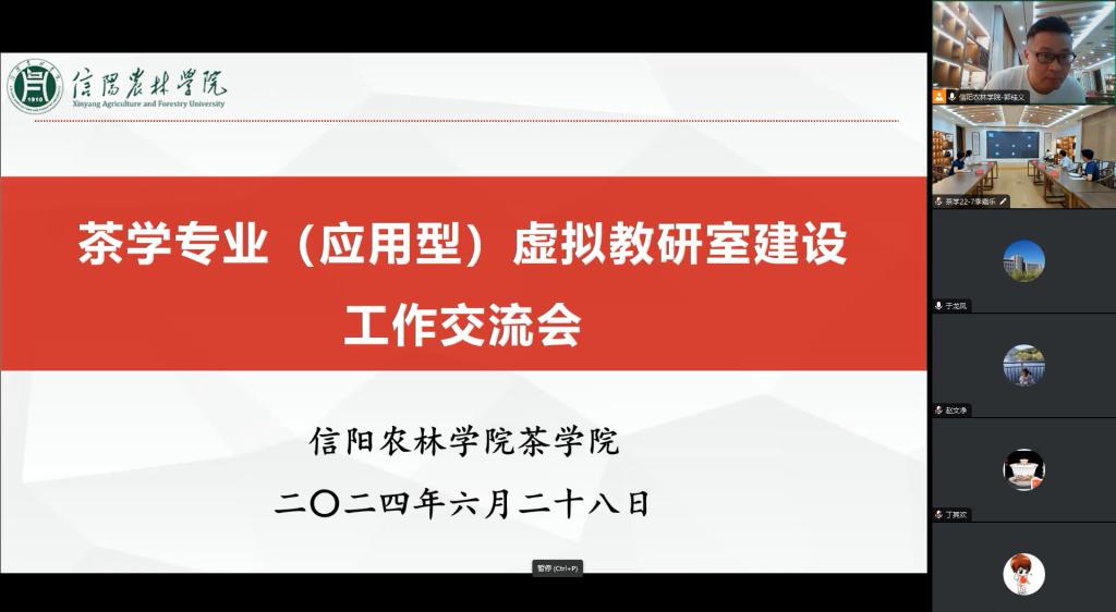 为认真落实河南省教育厅虚拟教研室建设相关工作要求,进一步推动茶学专业(应用型)虚拟教研室平台建设,促进各高校茶学教学教研能力的提升,提高茶学专业课程的教学质量和实践创新人才培养质量,2024年6月28日,河南省本科高校虚拟教研室立项建设教研室茶学专业(应用型)虚拟教研室在beat365在线平台官网茶学院召开建设工作交流会,会议采用线下线上结合的方式举行。茶学院副院长陈义教授、尹鹏副教授,茶学院教学秘书张向娜博士、茶学实验教学中心主任苏丹博士等参加会议。来自滇西科技师范学院、滇西应用技术大学、普洱学院、宁德师范学院、武夷学院、宜宾学院、安康学院、梧州学院等应用型本科高校的教研室成员线上参会。会议由茶学专业(应用型)虚拟教研室负责人、教育部高等学校教学名师奖获得者、国家一流本科课程《茶叶审评与检验》负责人、beat365在线平台官网茶学院原院长、二级教授郭桂义主持。