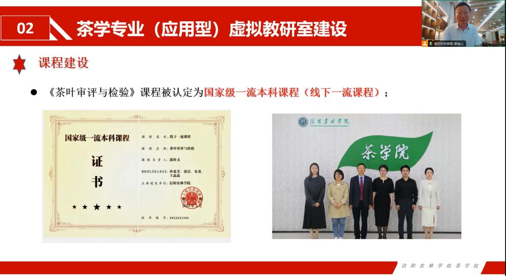 郭桂义教授希望各高校充分利用好虚拟教研室的建设,优势互补,汇聚各方智慧与力量,进一步推动各校茶学专业的教育教学改革和人才培养模式创新方面的合作。本教研室将持续加强跨学校、跨地域的教研交流,创新教研形态,加强教学研究,共建共享优质教学资源库,形成互联互通、共建共享机制。(撰稿/张向娜 摄影/李嘉乐 宋晗)