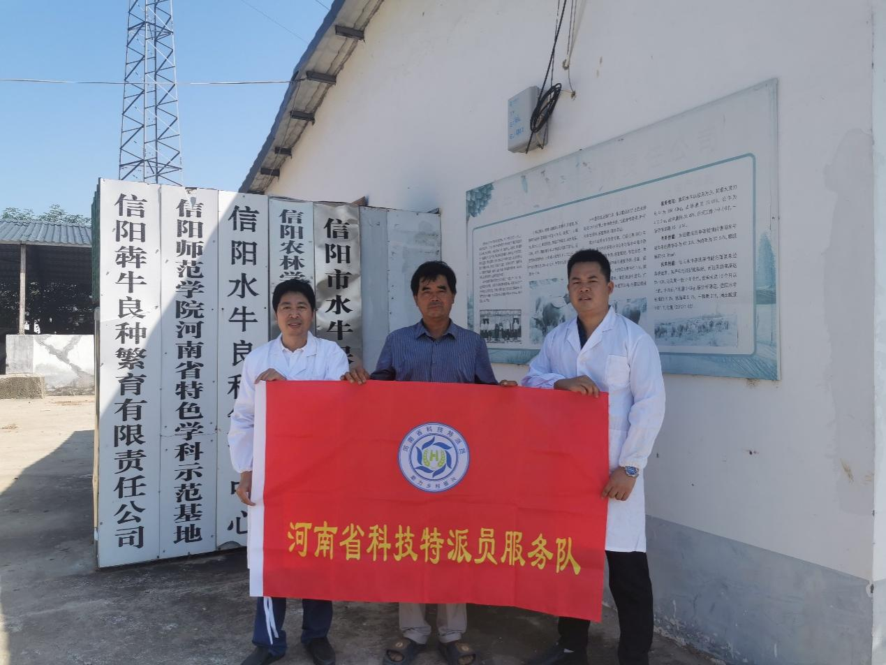 8 月 26 日,动物科技学院教师、省科技副总梁成成博士,联合省科技特派员、信阳市畜牧兽医技术服务中心胡建新组成专项服务队,深入信阳犇牛良种繁育有限公司,围绕秸秆饲料化利用关键技术开展现场指导。