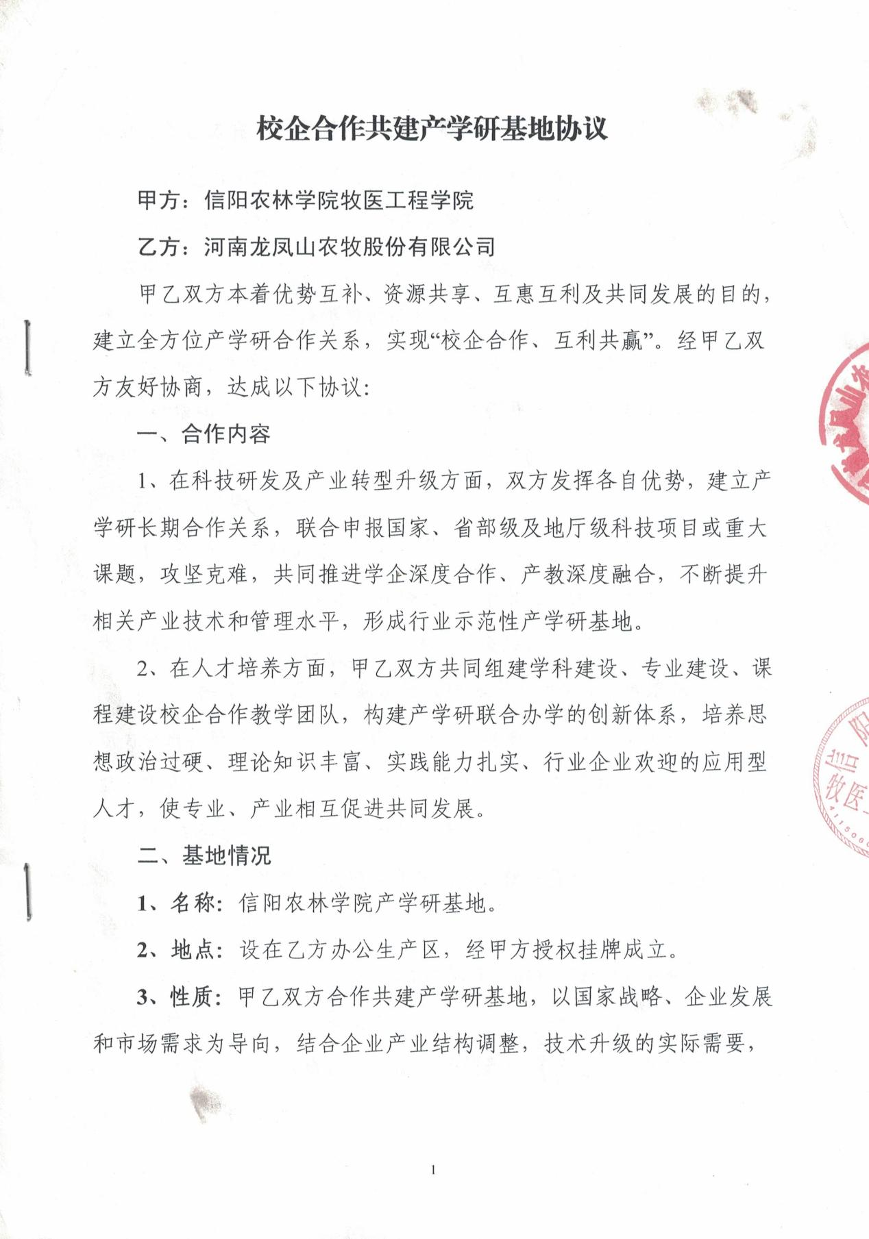 牧医工程学院校地合作企业——河南省龙凤山农牧股份有限公司