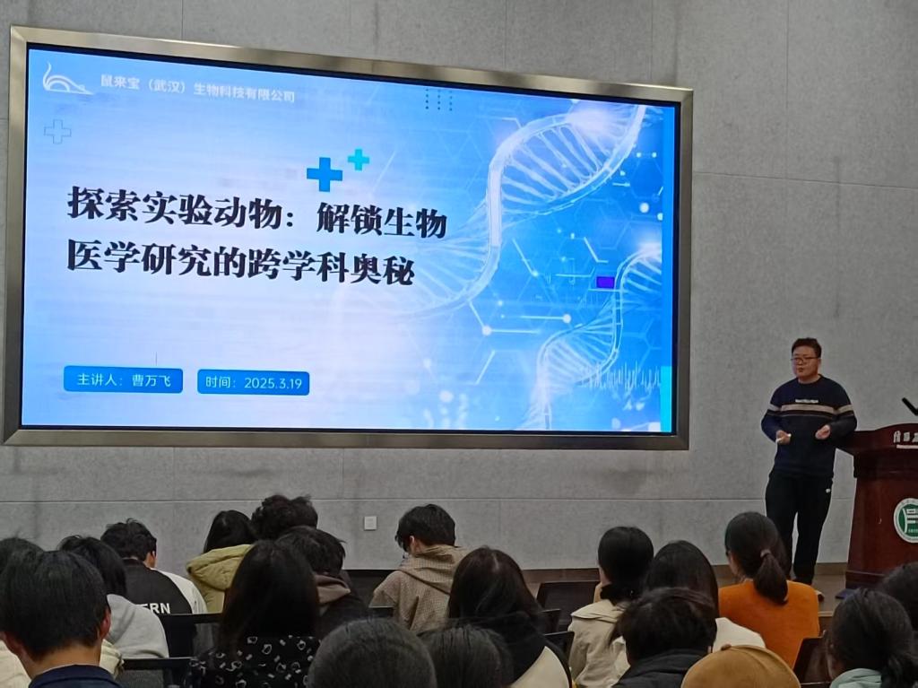 2025年3月19日,鼠来宝集团副总裁曹云飞在beat365在线平台官网众创空间多功能报告厅作题为《探索实验动物:解锁生物医学研究的跨学科奥秘》的专题报告。报告会由动物科技学院副院长刘涛主持,学院100余名师生参与活动。