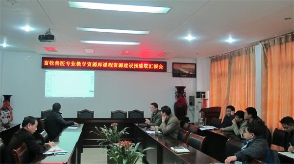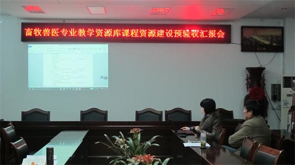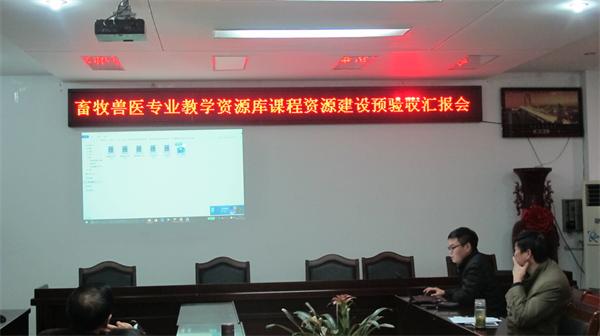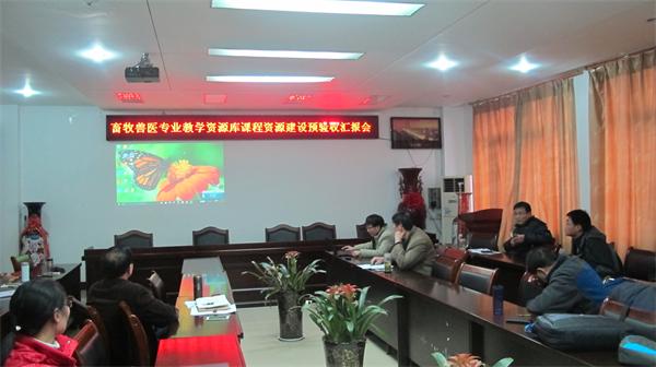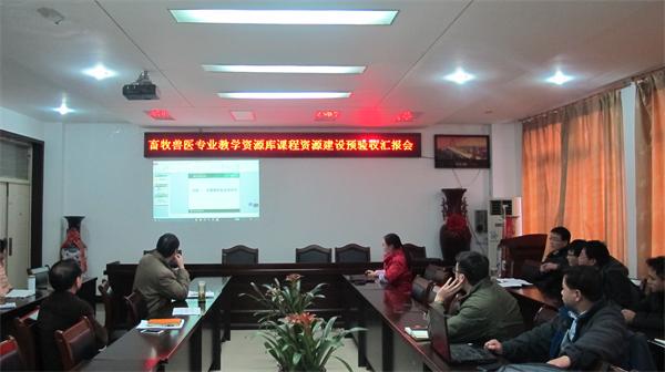 “畜牧兽医专业教学资源库建设”项目是由本院2013年申报立项的校级专科教学质量工程建设项目。在临近项目结项之际,为保障项目建设的质量标准,学院组织了本次预验收汇报会。汇报会上各课程负责人首先介绍了各自负责课程资源建设情况,并简要展示了各课程资源建设相关材料。接着由项目负责人赵云焕教授分别就专业教学资源和专业素材资源建设情况进行了汇报和展示。随后陈宏智书记对各门课程负责人的工作表示了肯定,同时对照“验收标准”指出了在课程资源建设过程存在的不足,并提出了相应的补充和完善意见。最后,易本驰副院长要求各课程负责人本着规范、严谨、认真的态度,进一步完善各环节的教学资源,全面完成畜牧兽医专业教学资源库建设工作(院办)。