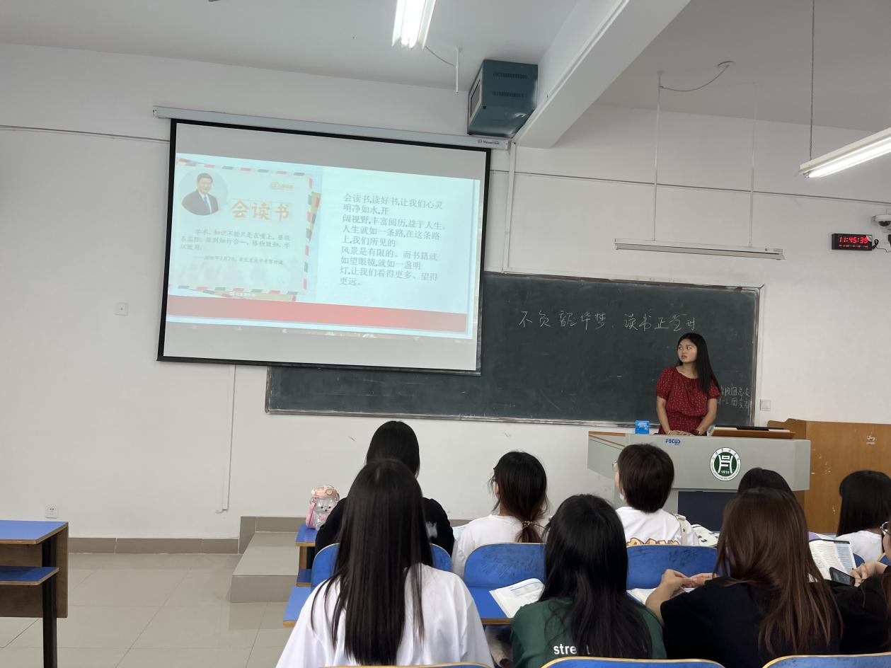本次活动以高静雯介绍读书的意义开场,她鼓励同学们“会读书,读好书”。接下来,顾生根、赵志敏等同学发起经典诵读、好书分享活动,激起同学们“读好书”的热情。最后,同学们一起进行了读书感悟心得交流。活动以“不负韶华 读书正当时”读书倡议签名圆满结束。