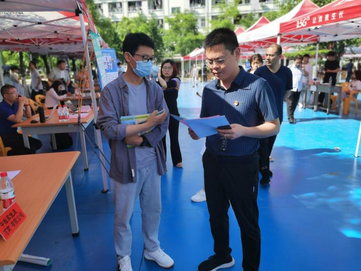 招聘会现场,毕业生认真挑选感兴趣的工作岗位,积极投递简历材料。用人单位与毕业生面对面交流,详细介绍提供岗位的薪资福利、工作前景等情况,并耐心为毕业生答疑解惑。在各企业展位前,招生就业处李门双副处长、牧医工程学院黄立院长、张广强副书记及就业专员尹磊一行与用人单位和毕业生亲切交流,详细了解招聘岗位、薪资待遇、学生意向等情况,并引导同学们树立“先就业,再择业”的理念。