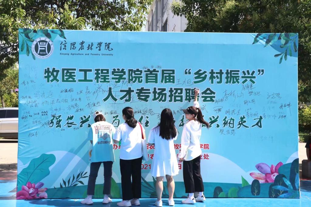 为深入贯彻落实《河南省教育厅办公室关于开展2021届全省高校毕业生就业促进月活动的通知》和《中共中央国务院关于全面推进乡村振兴加快农业农村现代化的意见》精神,同时抢抓毕业生求职择业的关键时期,多措并举促进毕业生顺利毕业、尽早就业,2021年5月30日,牧医工程学院在碧云天餐厅西侧广场举办首届“乡村振兴”人才专场招聘会。