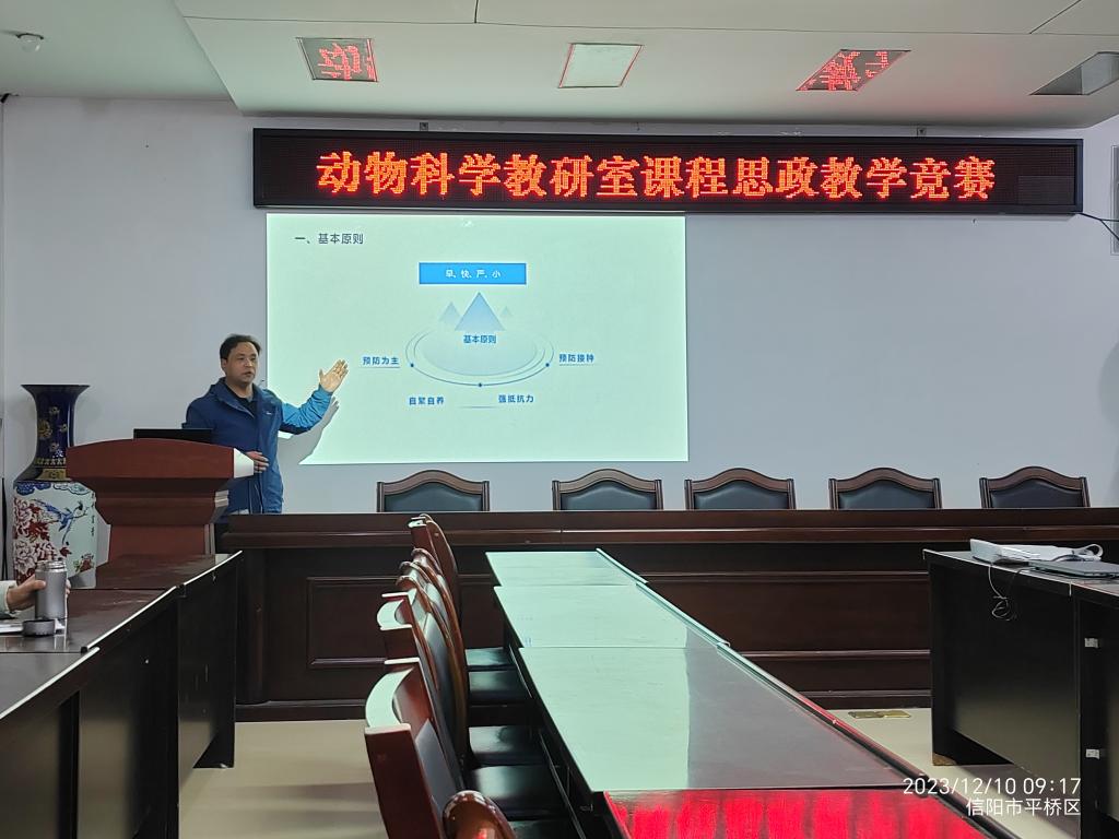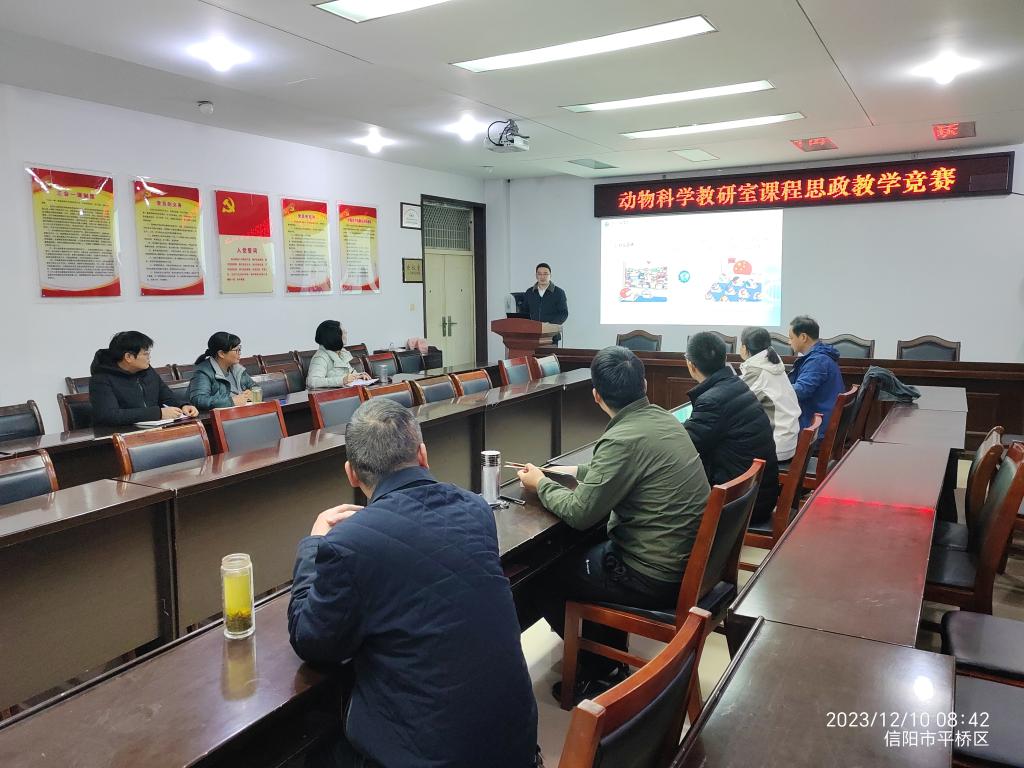 2023年12月10日上午,动物科学教研室举办了动物科技学院“课程思政”教学技能竞赛初赛。本次竞赛旨在充分发挥专业课教学的思想政治教育功能,构建全员、全程、全课程的育人格局,使各类专业课程与思想政治理论课同向同行、形成协同效应。
