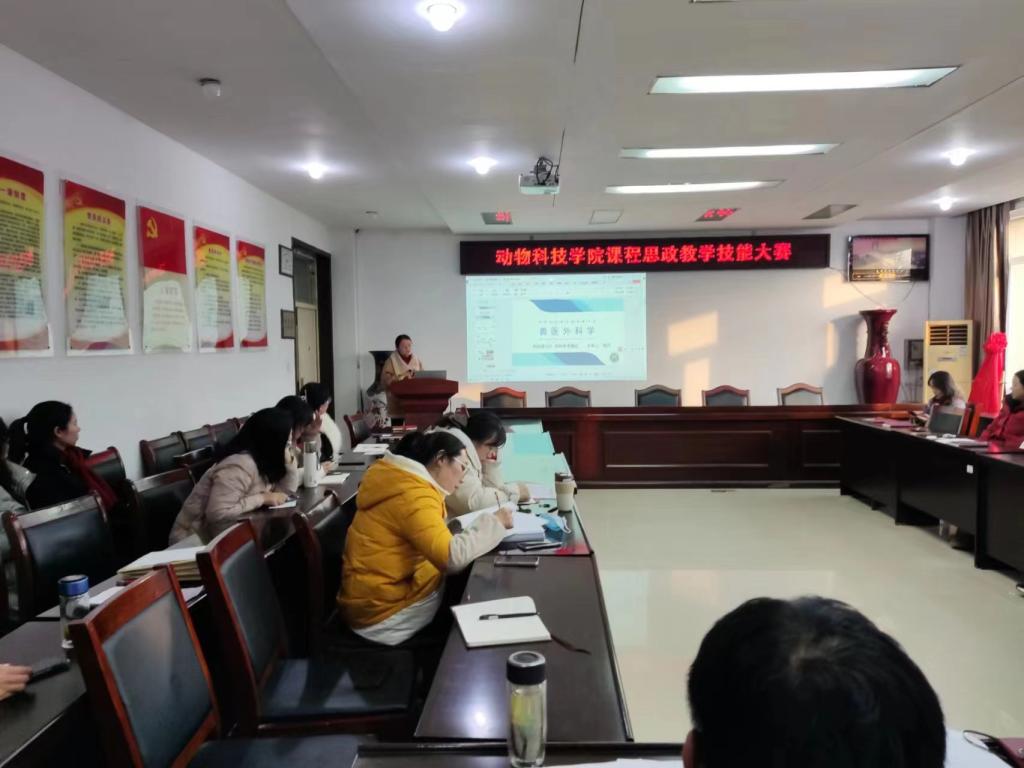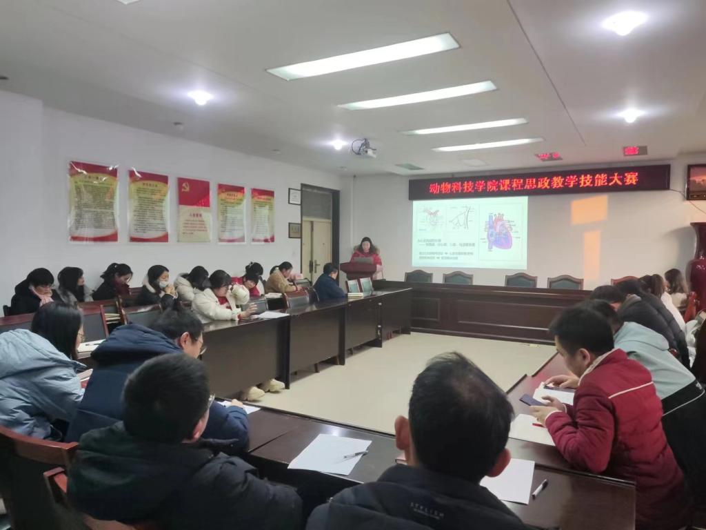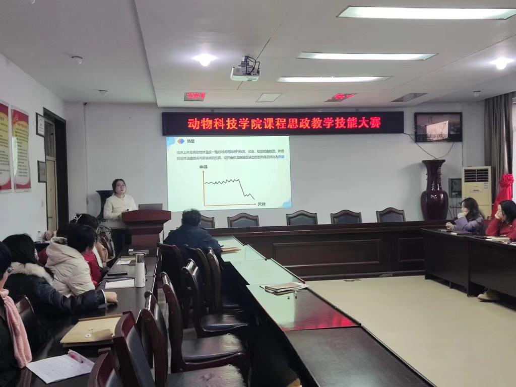 为进一步推进“课程思政”教学改革,充分发挥课堂教学育人主渠道、主阵地作用,挖掘和丰富专业课程育人内涵,落实立德树人的根本任务。1月2日下午,动物科技学院在学院会议室2C313举行课程思政教学技能比赛。