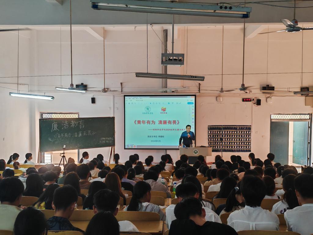 9月23日下午,院党总支书记李建柱以“青年有为 清廉有畏”为题为新生开展了廉洁主题教育。