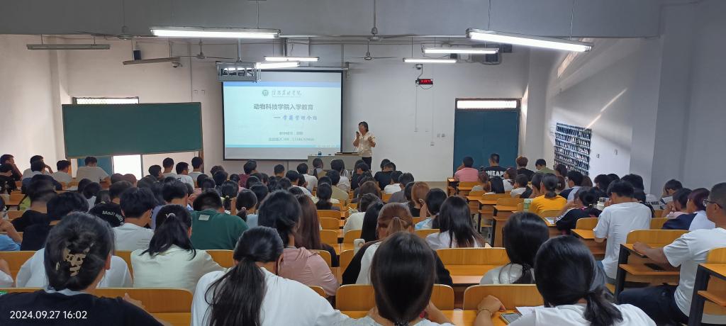 9月25日,动物科学教研室副主任李治利为动物科学专业新生开展专业导论教育。