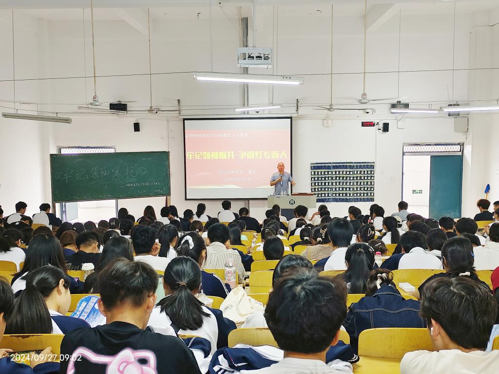 9月27日上午,副校长黄立以“牢记领袖嘱托,争做红专新人”为新生开展理想信念教育。