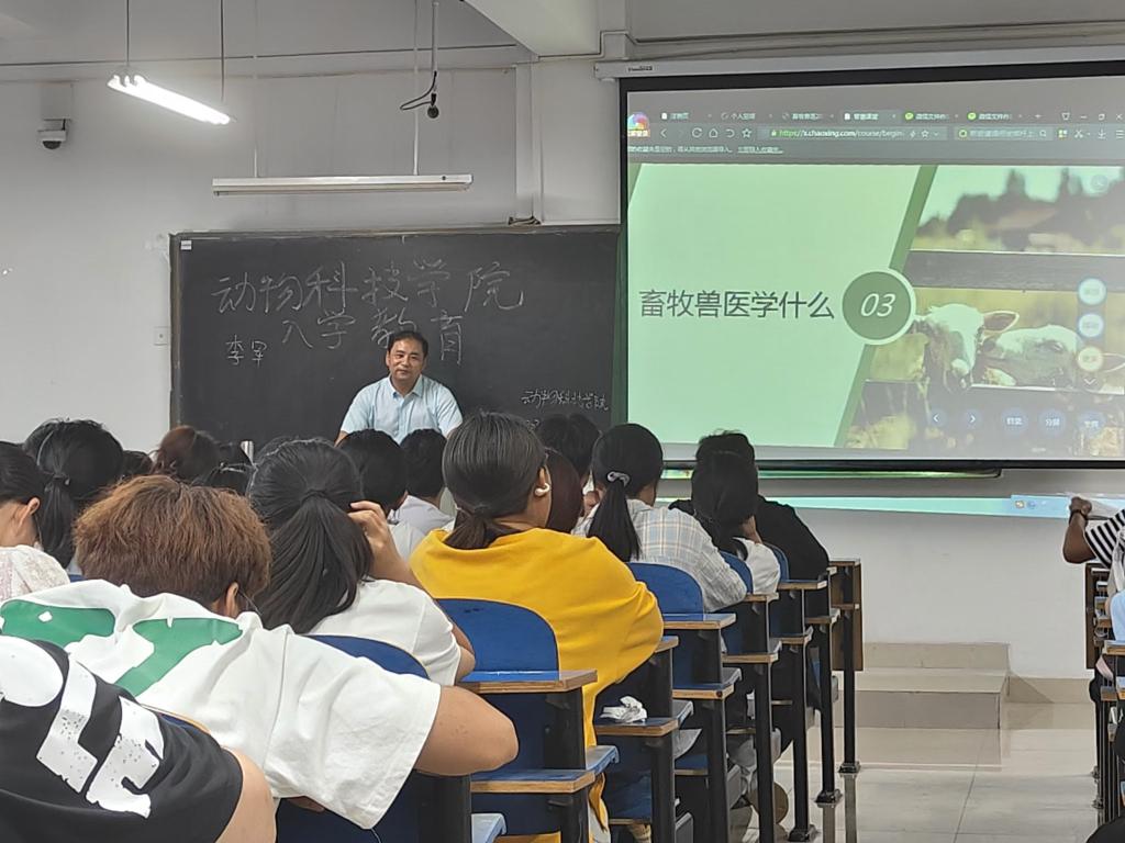 9月25日,专业教师李军为畜牧兽医专业新生开展专业导论教育。