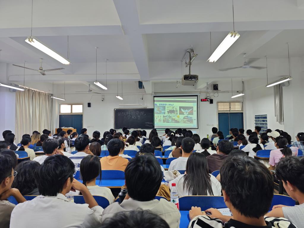9月25日,优秀校友郑慧华为动物医学专业新生开展行业发展报告。