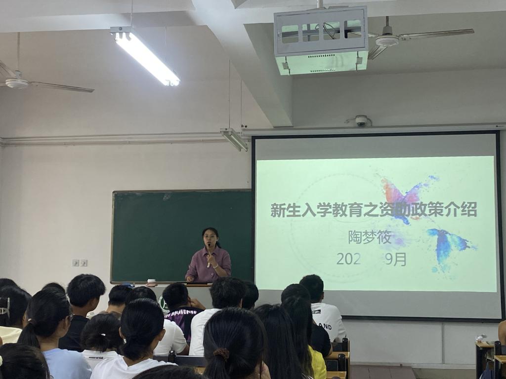 9月26日上午,资助专员陶梦筱为新生开展“高校资助政策”业务培训。