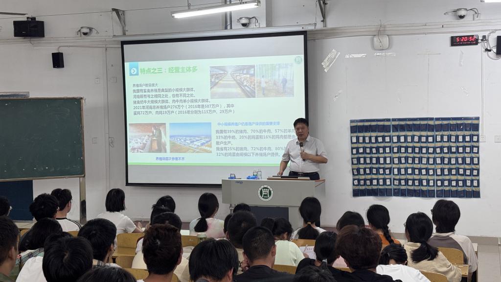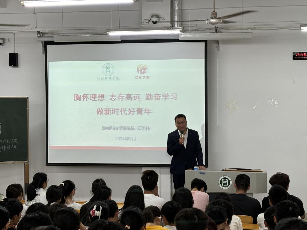 9月24日上午,副校长张光辉以“我国畜牧业发展现状及未来趋势”为2024级新生开展开学第一课。