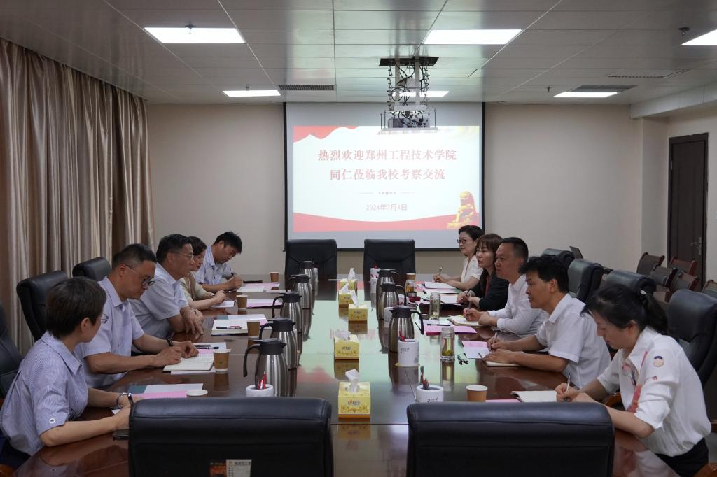 7月4日,郑州工程技术学院纪委书记、监察专员李永春一行五人来beat365在线平台官网考察交流,双方在综合办公楼617会议室召开座谈会。座谈会由beat365在线平台官网纪委书记、监察专员陈寒冰主持,校纪委、监察专员办公室相关负责同志,党委巡察办全体成员参加。