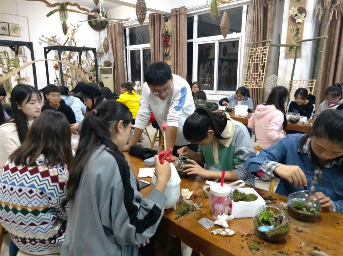 A professional society whose main teaching content is the reproduction of flowers and plants, embossing, flower arrangement, bouquet making and daily maintenance of various flowers and green plants, and the names, habits, and language of flowers and plants. In the past two years, the society has learned and innovated the teaching content of making ecological bottle micro-landscapes, small micro-bonsai, flower borders, water and land tanks, and net red pots.And it is also the society’s duty toimprove the students' practical ability and aesthetic level, promote the construction of campus culture and the protection of the ecological environment.