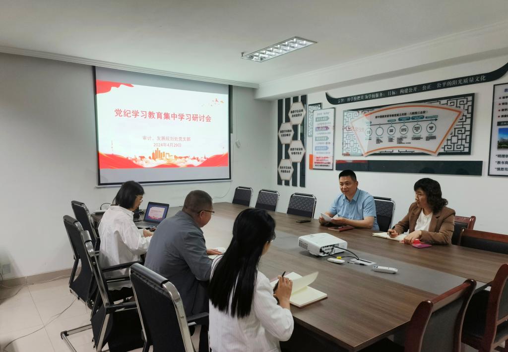 4月19日上午,审计处与发展规划处党支部在综合办公楼302办公室召开党纪学习教育集中研讨会,会议由熊元靖同志主持,支部全体党员参加会议。