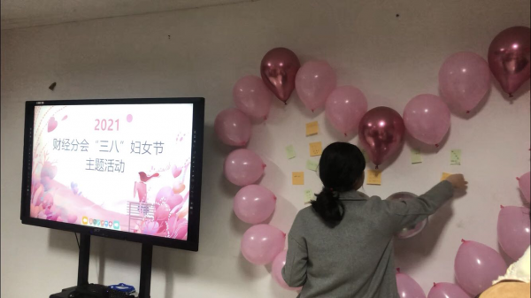 温馨的活动现场和精美的礼物烘托了节日的欢乐气氛,财经学院女教师们齐聚一堂,共同庆祝这个属于自己的节日。学院邀请的专业老师为大家讲授普拉提知识和作用,介绍了几个简单而又实用的松解肩颈的普拉提动作,帮助大家在繁忙的工作中得到有效的放松,保持健康愉悦的身心状态。大家跟随老师的示范伸伸腰、抬抬手手、踢踢腿,气氛热烈,欢声笑语不断。活动最后,老师们纷纷写下对2021年的美好期许。