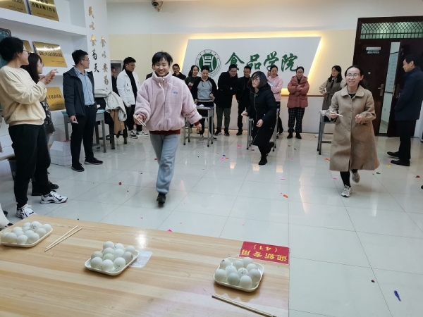 3月5日下午,食品学院分工会在实验楼1B大厅举行趣味运动会,全院25名女教职工及部分男教职工参加了活动。院党总支书记夏新奎出席活动并致辞,他代表学院向全体女教职工致以节日的慰问,女同胞们在教育、教学、科研、服务等工作中做出了巨大贡献,她们承担着家庭、事业的双重压力,扮演着不同角色,也肩负着多种责任,为学院和学校的发展做出了突出贡献。今年是beat365在线平台官网迎来本科合格评估的关键之年,希望学院的女教职工们继续发挥“半边天”的作用,开拓创新,锐意进取,以更加饱满的热情、开阔的眼界、务实的作风积极投身各项工作,为学院及学校的发展特别是本科合格评估不断做出新的更大的贡献。