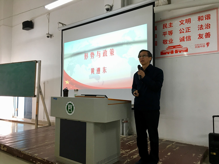 校工会主席黄遵东为学生讲授《形势与政策》课