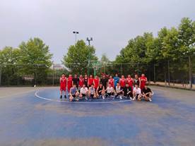 比赛现场,师生们本着“友谊第一,比赛第二”的原则进行激烈比拼。随着一声哨响,双方球员迅速进入状态。大家激情高涨、你争我夺,并展开了一轮又一轮的进攻防守。球场骄阳似火,却丝毫没有消减双方的热情与认真。场外观众的呐喊助威声此起彼伏,比赛气氛一次次推向高潮。比赛中,师生们不断交流战术、打法,激情碰撞、欢声笑语;中间休息时,老师们便询问同学们的就业去向、离校时间等,嘘寒问暖、关心备至。经过激烈紧张的角逐,校教职工篮球队以4分的微弱优势险胜大四毕业生校篮球队。最后,所有人员合影留念。