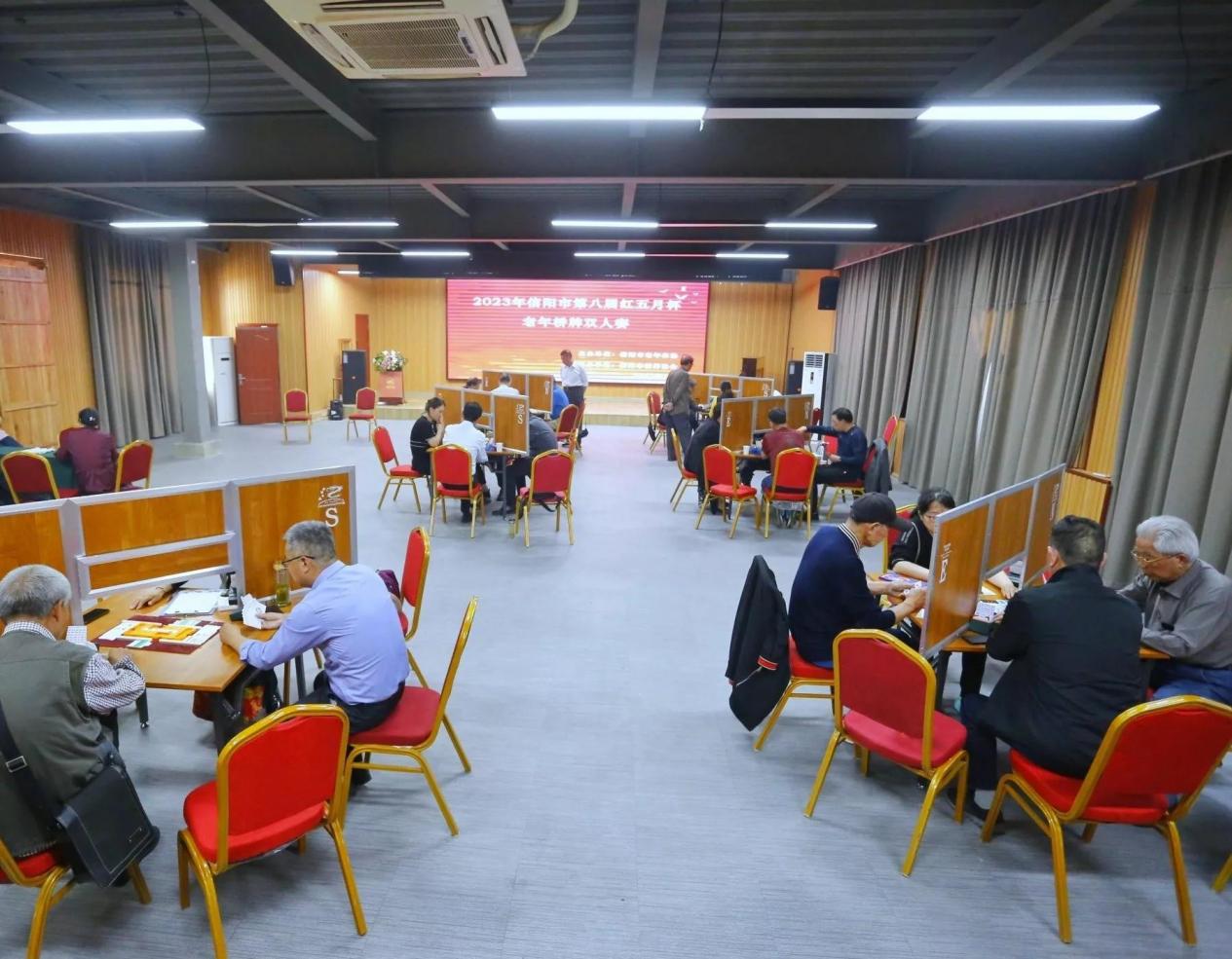 2023年5月13日,为贯彻落实《全民健身条例》,提高广大桥牌爱好者的技术水平,由信阳市老年体协主办,信阳市桥牌协会承办的“2023年信阳市第八届红五月杯桥牌双人赛”,在著名的南湾湖风景区南湖书院景明堂举办。