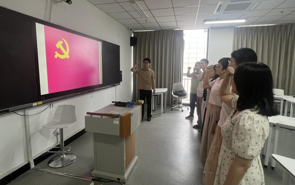 活动的第一项议程是举行重温入党誓词仪式。李益南老师带领全体党员面向党旗重温入党誓词,引导广大党员教师对照入党誓词,对标准、找差距,增加对党的感情,进行思想再洗礼,将行动落到实处,不断淬炼党性,不忘初心,牢记使命,勇担时代重任。