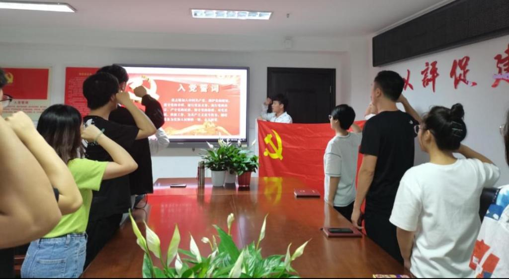 会上,在支部书记杨丽娜的带领下,全场党员起立,面对鲜艳的党旗,庄重地举起了右手,共同重温了入党誓词。铿锵的誓词,让党员们热血沸腾,更加坚定了自己的理想信念和党性认识。
