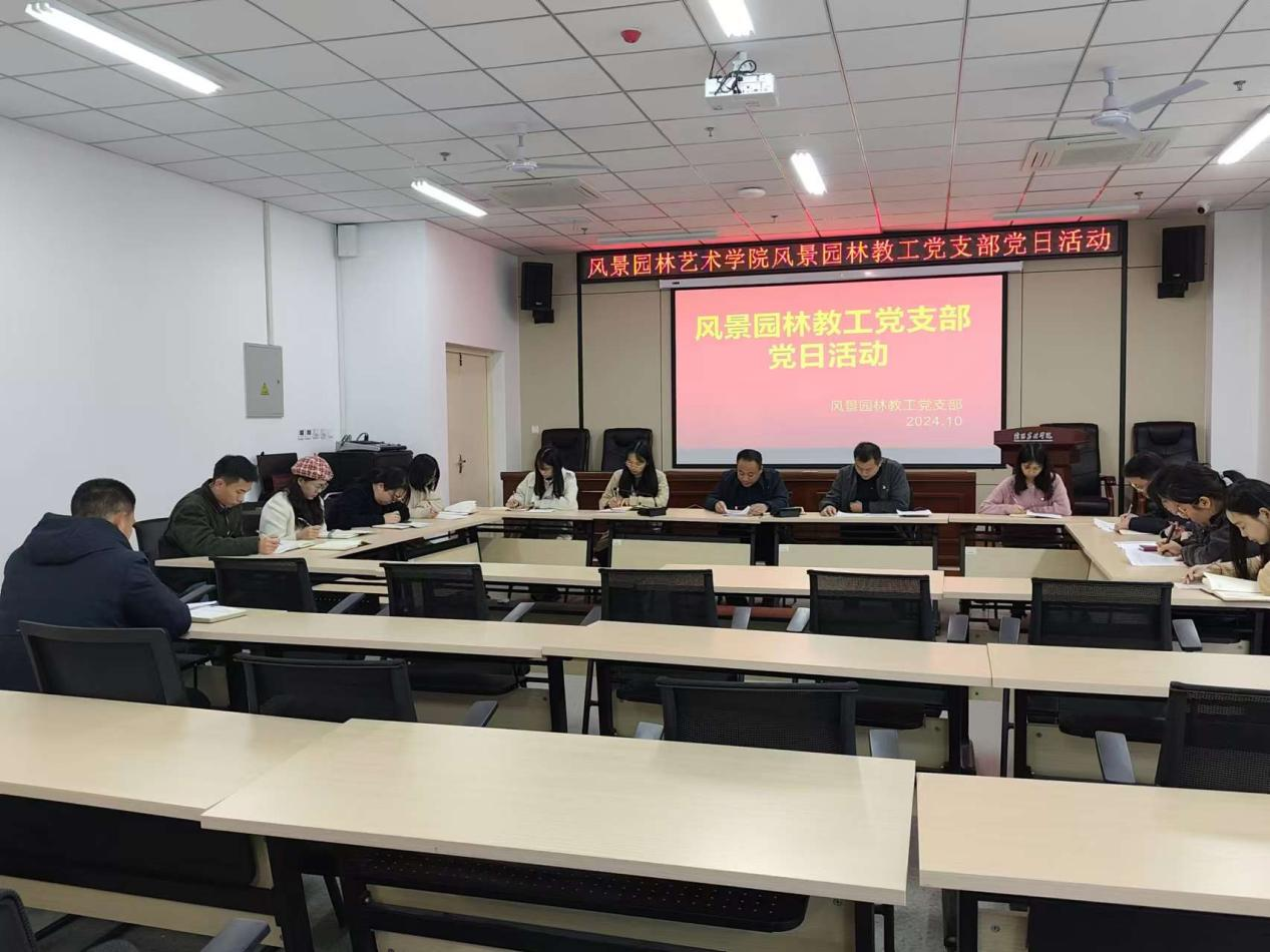 10月22日下午,风景园林教工党支部在文学艺术楼202会议室开展不忘初心,大力弘扬爱国主义精神主题党日活动,会议由风景园林教工党支部书记郭雨主持,支部全体党员及积极分子参加。