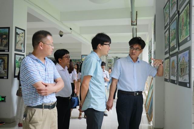 6月14日上午,副校长赵一鹏到教二楼参观规划与设计学院师生写生作品汇报展,规划与设计学院院长胡正元、副书记王国艳以及相关专业教师陪同参观。