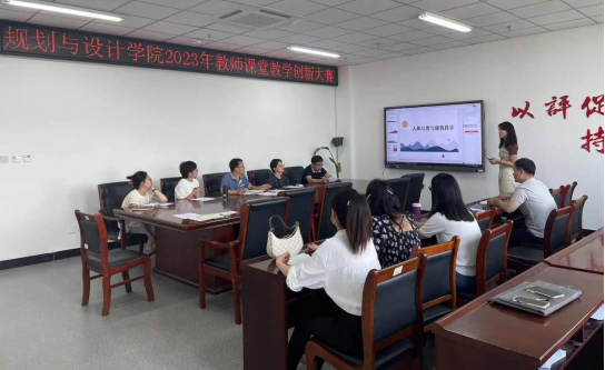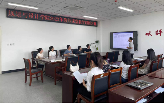 为了进一步推动课堂教学改革与创新,提高教师课堂教学能力,提升教育教学质量,规划与设计学院于6月12日在艺术楼705会议室举办2023年教师课堂教学创新大赛。大赛评委由教研室主任、往届大赛获奖选手代表担任,部分青年教师参与观摩学习。大赛由副院长张志锋主持。