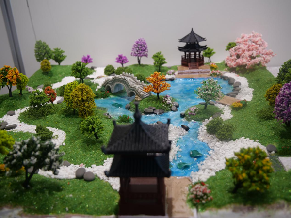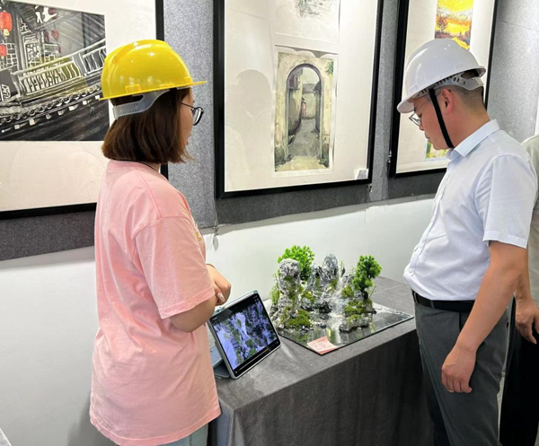 在学院“德艺双馨”育人工程的总体部署下,本次教学成果展以场景化教学活动-场地模型制作和假山模型课程教学创新成果展示为核心,师生共同打造沉浸式教学互动方式,重点突出学生们的参与度和体验感。整个展厅的布置及场景化沉浸式教学互动以实际工程现场为原型,展厅入口模仿工程现场入口方式,老师及学生进入展厅佩戴安全帽,通过施工环境的塑造为同学们营造一个良好的施工氛围,力求达到“环境育人”的效果,让同学们真正懂得了课堂上老师所讲的严谨负责的工作态度及匠人精神在专业领域中重要性。