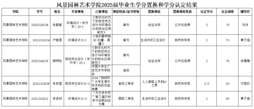 依据《beat365在线平台官网普通本科生课程置换和学分认定管理办法(试行)》信农教〔2022〕17号文件规定,经学生个人申请,经辅导员和学院审核认定,现将我院2025届毕业生学分置换和学分认定结果人员信息公示如下:
