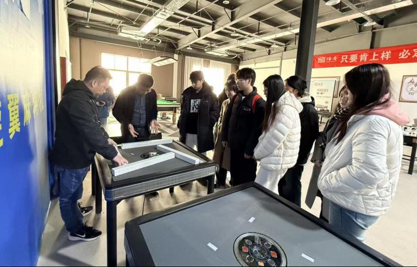 河南鑫传奇娱乐设备有限公司在企业发展十余年间曾多次与全国各高校开展校企合作,专业生产、制造、销售第三代旋风麻将机。本次实践教学聚焦企业麻将机产品的更新升级需求,师生们在企业技术骨干的带领下,实地考察了企业产品展厅、加工生产车间。通过现场观摩、座谈交流等形式,详细了解了麻将机在安全性、耐用性、空间适配性等方面的行业标准,以及技术革新、环保材料选用、模块化设计等前沿趋势。同时,结合实际项目案例,针对现阶段麻将机的人机优化、氛围营造与场景适配等关键问题进行了专题指导。