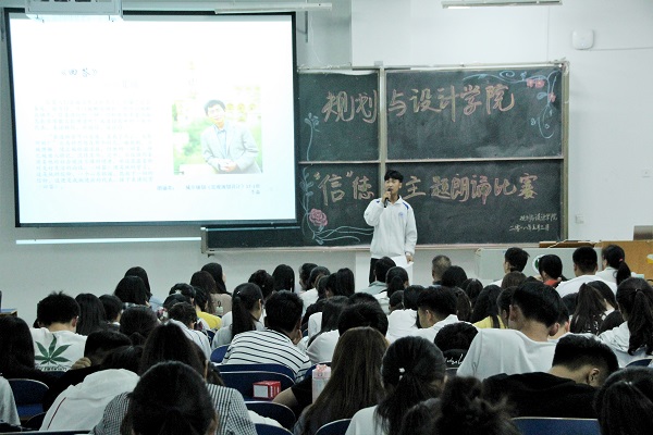 5月3日,规划与设计学院在1教E101教室举办“信”德主题朗诵比赛。党总支书记王国艳、正科级组织员张志锋、团总支书记魏薇、学工组老师王晓婕、候婉矜、何小溪、杨璐璐、梁涛以及各年级学生代表参加。