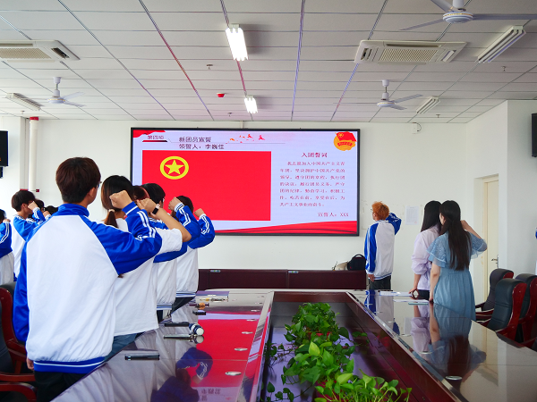 新团员入团宣誓仪式在师生同唱国歌声中拉开序幕。黄慧慧老师现场宣读了田少伟等35名新发展团员名单;在场的老团员为新团员佩戴团徽;领誓人李巍佳同学带领35名新团员高举右拳面向鲜艳的团旗庄严宣誓,用铿锵有力的誓言表达了成为一名共青团员的责任和担当;李美萱老师宣读《团章》中有关团员义务和权利的条款;新团员和老团员代表分别进行了发言,表达自己积极进取,充分发挥模范带头作用,努力做有理想、敢担当、能吃苦、肯奋斗的时代先锋。
