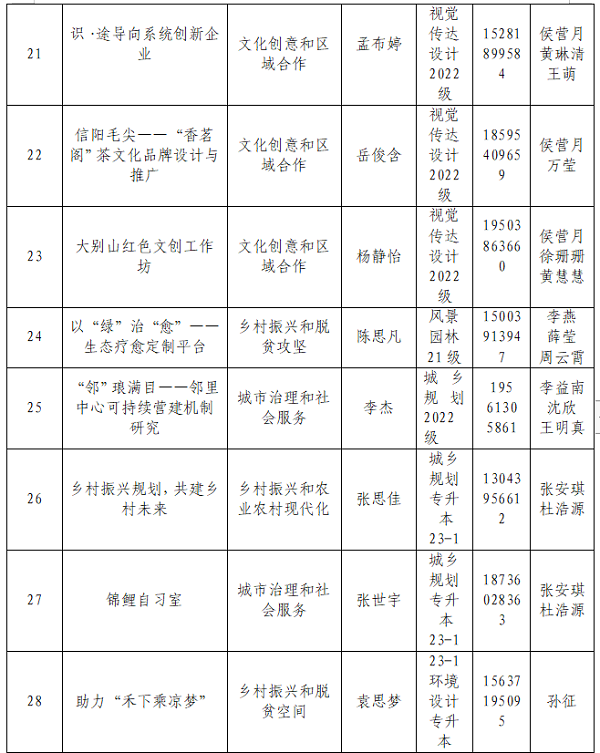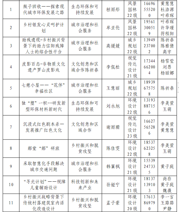 根据《beat365在线平台官网2024年“挑战杯”大学生创业计划竞赛方案》的通知要求,经风景园林艺术学院各班级学生申报、教师指导、学院资格审查和初评等环节,确定如下作品推荐到校级比赛,现予以公示。