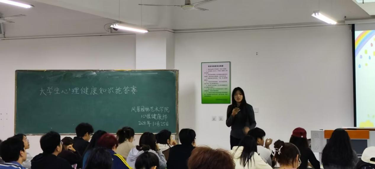 为向学生广泛宣传心理健康知识,拓宽心理健康教育途径,积极营造良好的心理健康教育氛围,风景园林艺术学院于10月25日开展大学生心理健康教育文化节之“心理健康知识”抢答比赛活动。