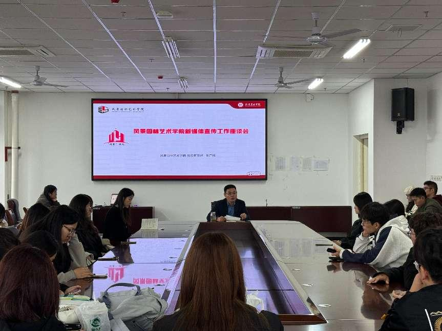 11月15日,风景园林艺术学院在文学艺术楼702会议室召开了风景园林艺术学院新媒体宣传工作座谈会”。风景园林艺术学院党总支书记张广强、团总支副书记黄慧慧、专职辅导员辛颖及学院学生自媒体运营小达人代表参会。会议由张广强主持