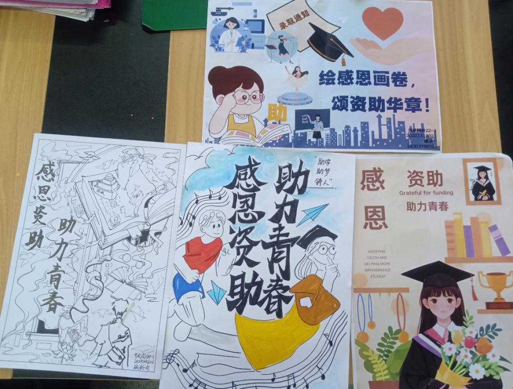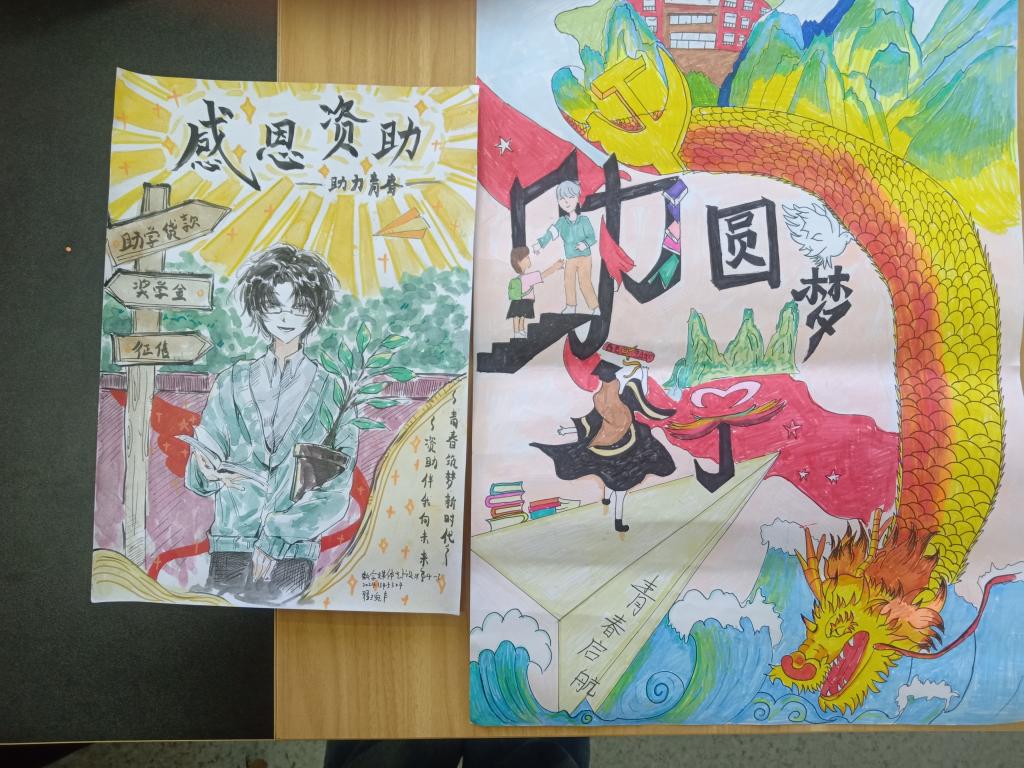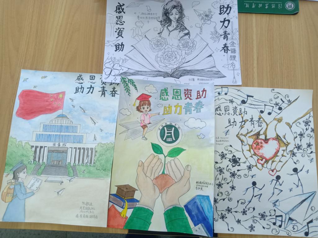 本次活动旨在通过绘画的艺术形式,展现资助政策在助力青年学生追梦路上的积极作用。学生们围绕 “感恩资助,助力青春” 这一主题,结合资助政策实际,充分发挥自己的想象力和创造力,用手中的画笔描绘出一幅幅表现形式多样的、饱含深情的作品。有的描绘了在资助政策支持下,学生们在明亮的教室里努力学习的场景;有的展现了受助学生对未来的美好憧憬,每一幅作品都生动地展现了学生们的感恩之心和青春活力。经过评选,翟婉丰、李盼盼同学荣获一等奖,陈叡迪、李柯雯、沈晨和谷文馨同学荣获二等奖,张新雨、谢冰一、程雅诺、吴新鸽同学荣获三等奖。