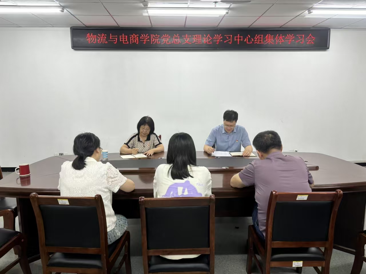 7月31日,物流与电商学院党总支理论学习中心组进行集体学习,深入学习贯彻习近平总书记关于全面加强党的纪律建设的重要论述和在中共中央政治局第十五次集体学习时的重要讲话精神,总结学院党纪学习教育开展情况。学院党总支理论学习中心组成员参加学习会。会议由党总支书记吴磊主持。