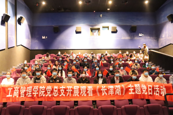 为热烈庆祝中华人民共和国成立72周年,深入推进党史学习教育,铭记先辈英雄伟绩,弘扬抗美援朝精神。工商管理学院党总支于10月12日下午,组织开展观看红色影片《长津湖》主题党日活动。