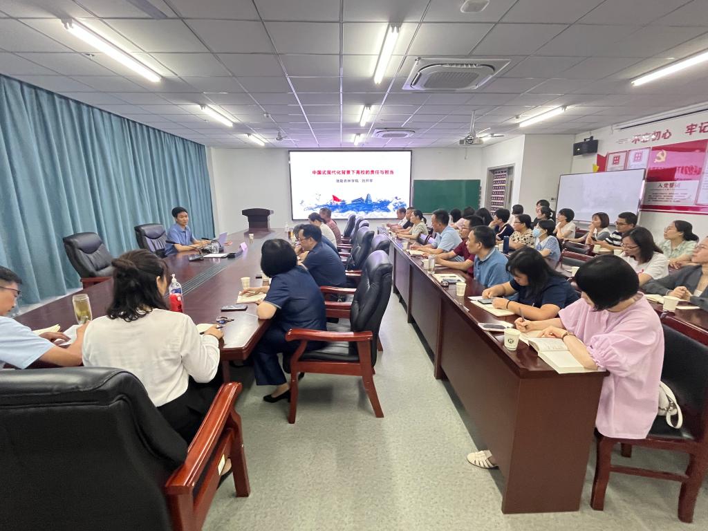 刘开华强调,党的二十大报告明确提出要以中国式现代化全面推进中华民族伟大复兴,认识和把握中国式现代化的历程及内涵,对于党团结带领全国各族人民全面建成社会主义现代化强国、实现第二个百年奋斗目标,以中国式现代化全面推进中华民族伟大复兴具有重大意义。我们高校教师应该积极主动学习,强化理论武装、夯实思想基础,不断提高学习与实践能力。