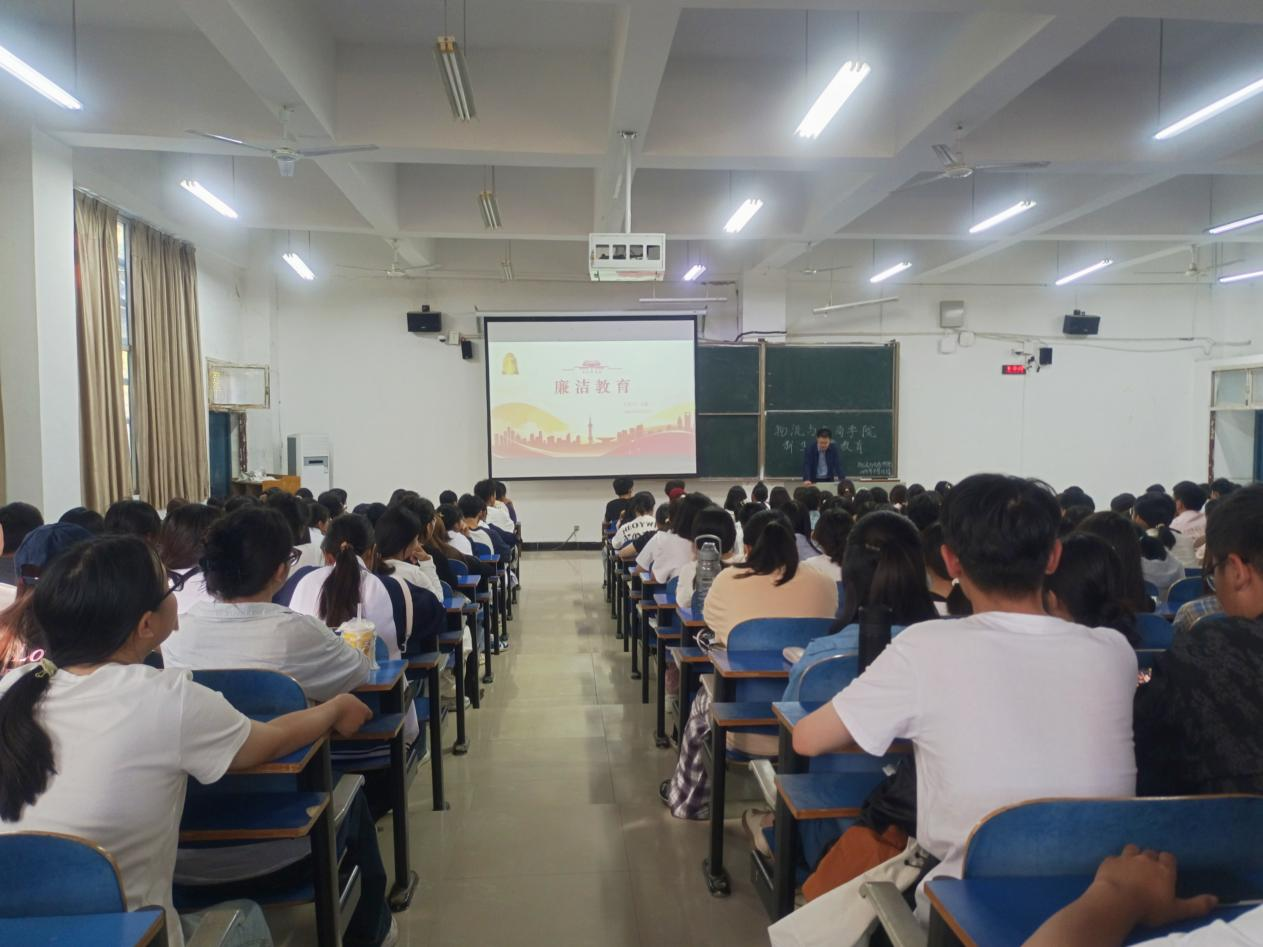 为积极引导大学新生树立正确的世界观、人生观和价值观,强化理想信念,深化廉政思想教育,弘扬廉洁文化精神,物流与电商学院于2024年9月25日成功开展了新生入学教育——廉洁教育第一课。本次入学教育活动由学院党总支书记吴磊主讲,2024级全体新生参加。