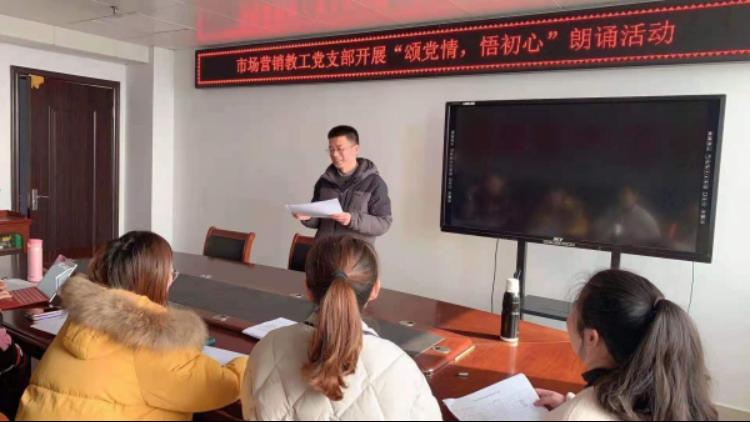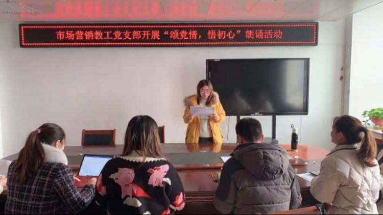 为深入贯彻敬党爱党精神,做好立德树人工作,工商管理学院市场营销教工党支部于12月8日在行政楼717开展“颂党情,悟初心”朗诵比赛。