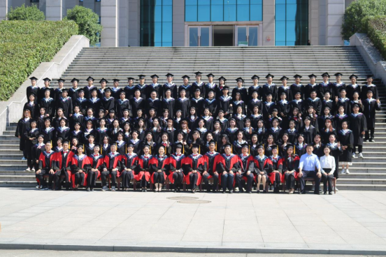仪式第八项:老师和学生于图书馆门口拍照留念。工商管理学院2023届毕业生学位授予仪式在大家的祝福声中圆满结束。