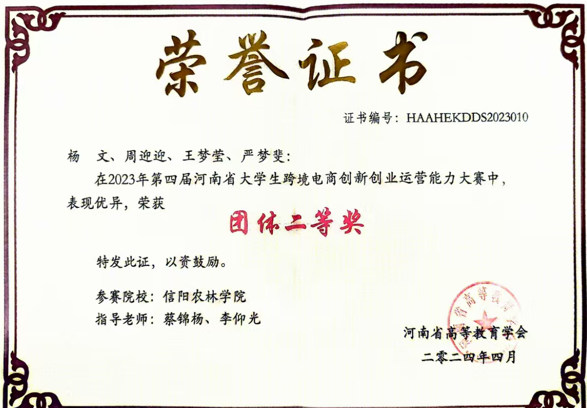12月7—8日,第四届河南省大学生跨境电商创新创业运营能力大赛在郑州圆满落幕。本次比赛学院共派出两支代表队,经过两天的激烈角逐,荣获二等奖一项。